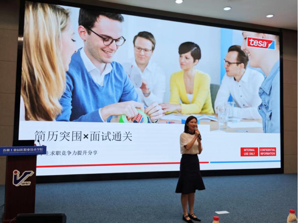 揭牌仪式后,德莎(苏州)资深人力资源专员陈玉冰带来题为《简历突围与面试通关策略》的专题分享。她从企业HR的视角,结合真实案例解读求职“痛点”,她表示:“简历是敲门砖,需精准匹配岗位需求;面试是双向选择,要展现能力与价值观契合。”