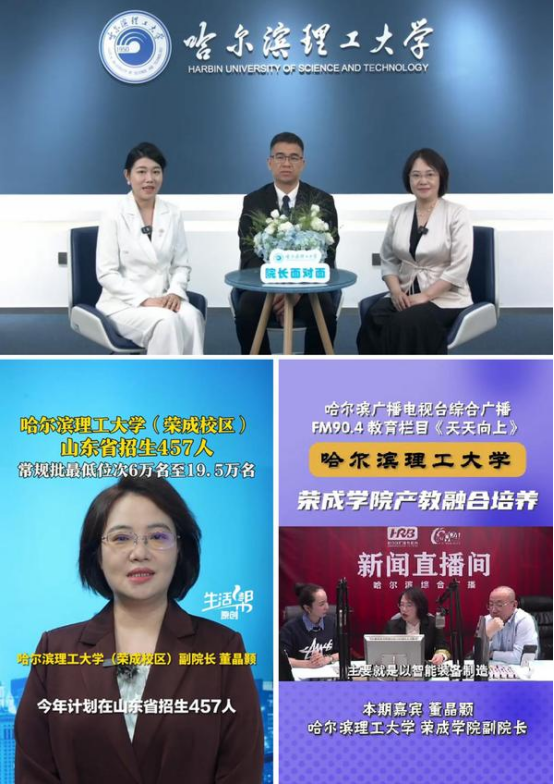 荣成学院积极拓展媒体合作渠道,广泛开展线上招生宣传活动。闫明明院长、董晶颢副院长及相关工作人员,先后参加了哈尔滨广播电视台招生采访、院长访谈系列直播录制、山东广播电视台生活农科频道《生活帮》“直通招生办”台网直播、电视直播、荣成市融媒体中心(荣成市广播电视台)直播等多档节目。借助各类线上平台、社交媒体和教育资讯网站,全面介绍学校的教育理念、学科优势、人才培养模式及历年就业情况,确保招生信息能够快速、精准地传达给目标受众,有效提升招生宣传的覆盖面和影响力。
