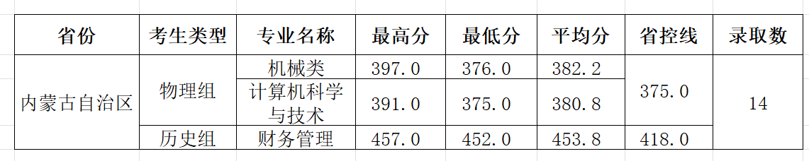 柳州工学院2025年内蒙古普通批第一次投档情况