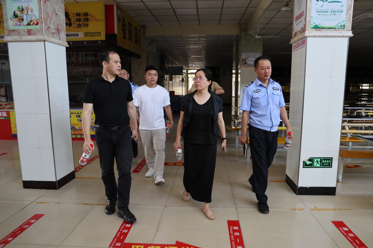 新闻中心讯(文/图 万强)7月4日上午,校党委书记林井萍、党委副书记唐新强一行深入学生宿舍、食堂、工艺机房、创意设计中心、大学生服务中心施工现场、“一站式”学生社区等,开展暑假前校园安全巡查。