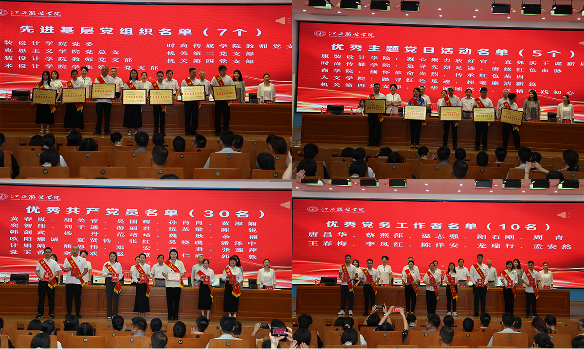 校党委副书记、校长薛家宝宣读了《关于表彰“先进基层党组织”“优秀共产党员”“优秀党务工作者”等的决定》,校党委副书记、纪委书记、副校长李宝君宣读了《关于公布学校党建示范创建和质量创优工作培育创建单位名单的通知》。校党委委员和党员校领导为受表彰单位和个人颁奖。