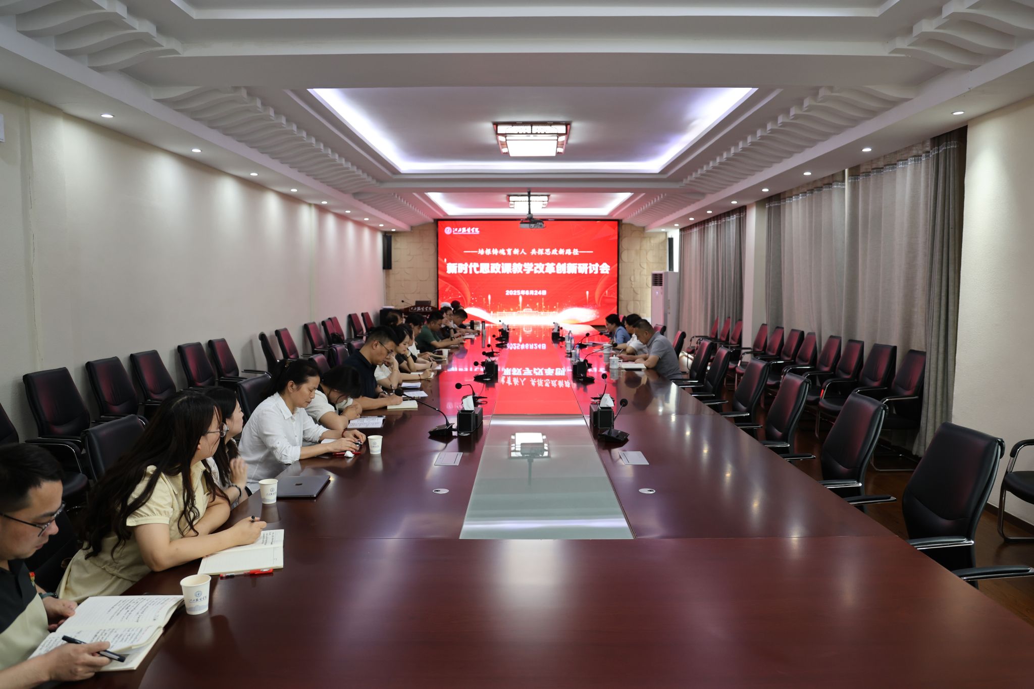 新闻中心讯(马克思主义学院 陈洋安) 6月24日,我校在行政楼二楼会议室召开新时代思政课教学改革创新研讨会。国务院政府特殊津贴专家、全国马克思主义理论研究和建设工程专家、全国马克思主义理论专业教学指导委员会委员郭杰忠教授莅临指导,校党委书记林井萍主持会议,校党委副书记、纪委书记李宝君,马克思主义学院思政课教师代表参加会议。