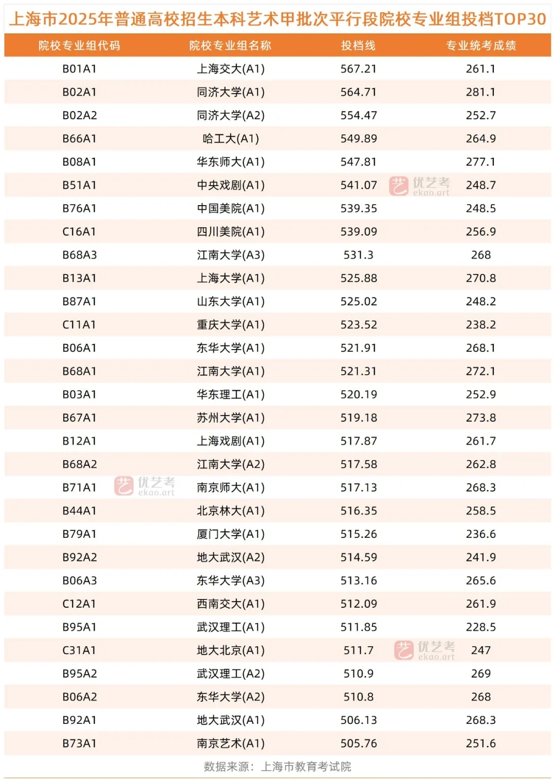 近日,上海市教育考试院公布了上海市2025年普通高校招生本科艺术甲批次平行段院校专业组投档分数线。优艺考整理了上海市2025年和2024年本科艺术甲批次平行段前30院校专业组投档排名情况,一起来看看今年都有哪些投档变化。