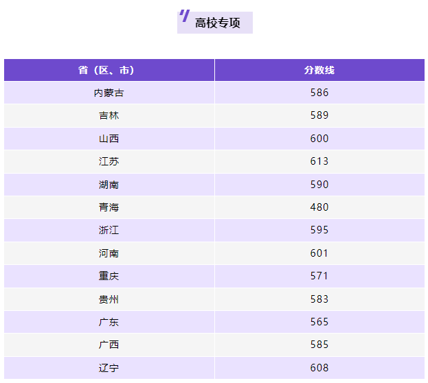 ★ 高校专项:内蒙古、吉林、山西、江苏、湖南、青海、浙江、河南、重庆、贵州、广东、广西、辽宁