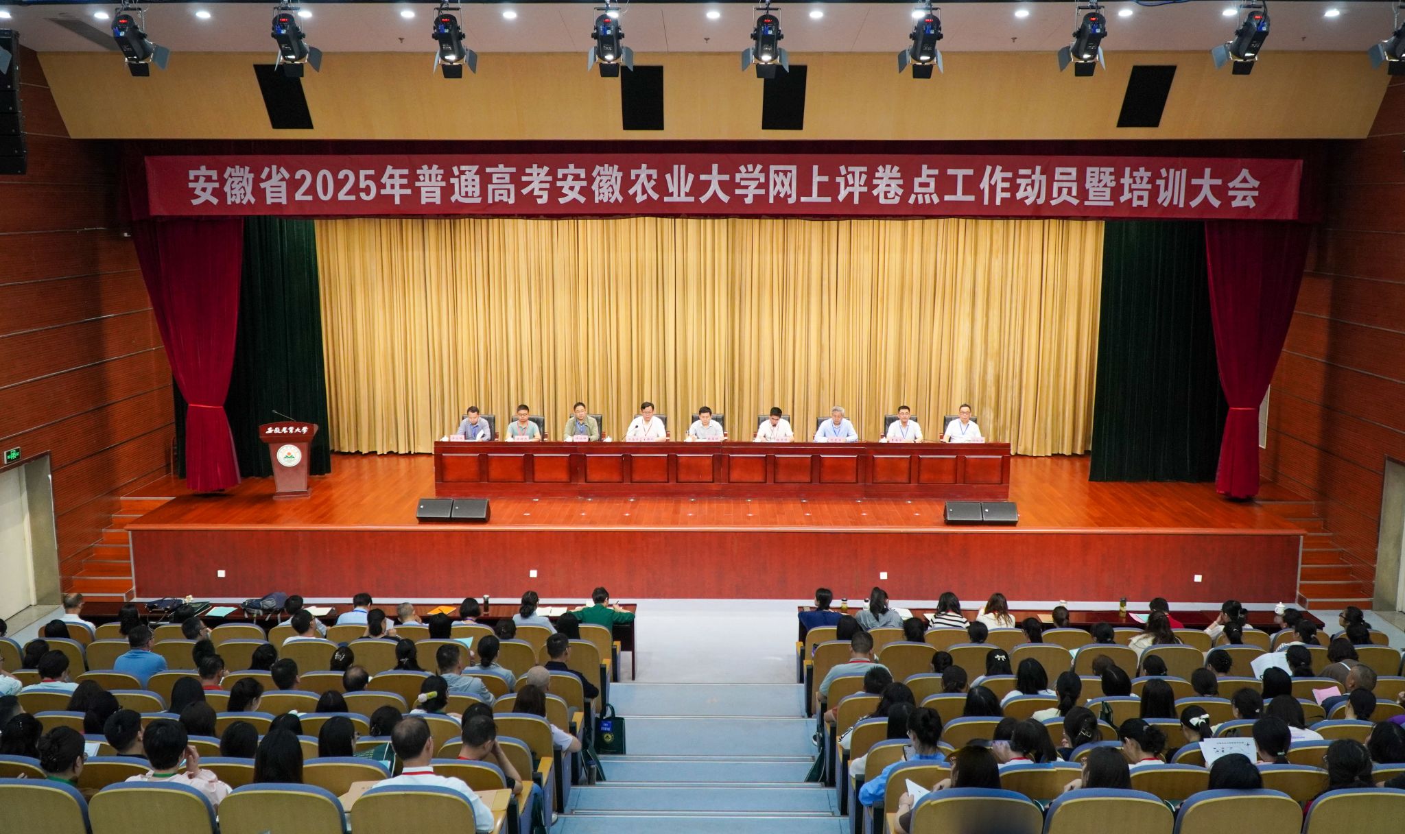 本网讯 6月12日上午,安徽省2025年普通高考外语科目网上评卷动员暨培训大会在我校图书馆第一报告厅召开。省教育招生考试院副院长张英明,校党委常委、纪委书记、监察专员程道传出席会议并讲话。评卷专家、教师及网评办公室成员参加了会议。会议由校党委常委、副校长江海洋主持。