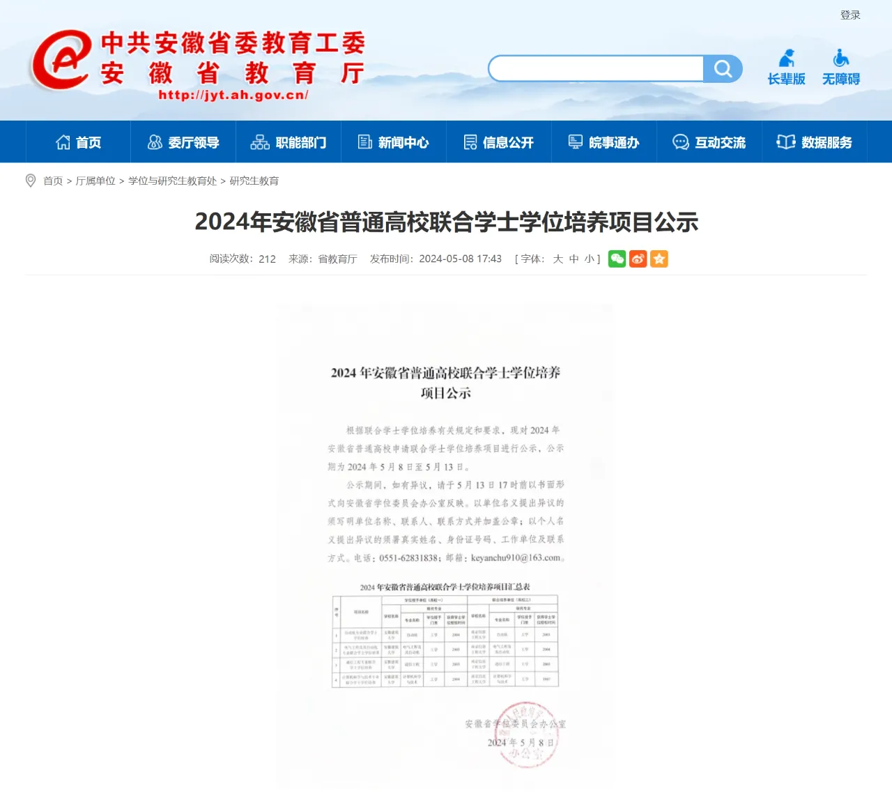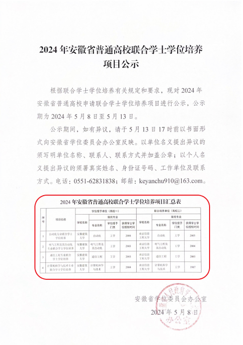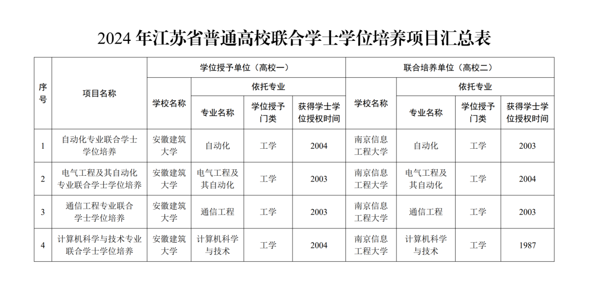 在我校与原全国重点大学、现“双一流”高校——南京信息工程大学连续开展两届本科拔尖人才联合培养的基础上,经安徽省教育厅、江苏省教育厅分别批准,自2024年起,我校与南信大在国内首创跨省联合培养学士,并纳入高考正式招生。经省考试院批准单设院校专业组,编号010,共有四个专业:计算机科学与技术、电气工程及其自动化、通信工程、自动化,每个专业30人,合计120人。