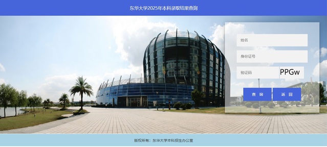 登录东华大学招生录取查询系统,输入姓名和身份证号,即可获得录取信息、邮寄快递EMS单号。
