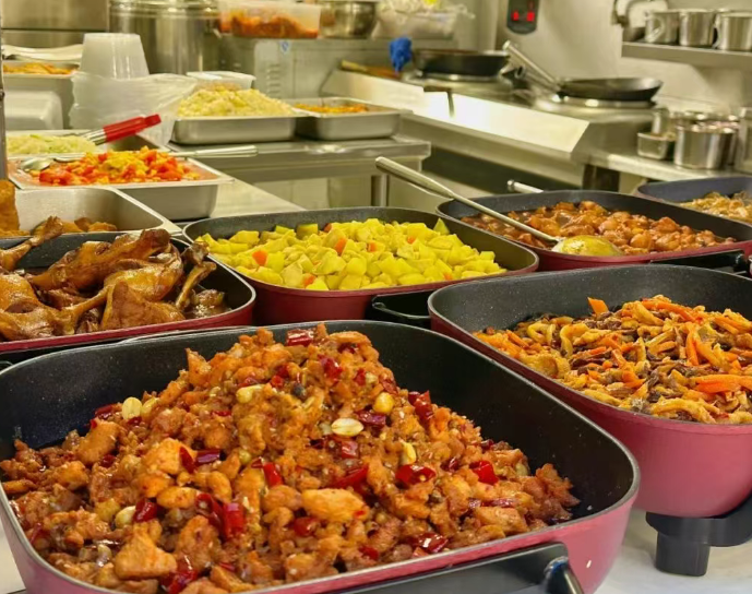 作为全校“人流最旺”的食堂,这里堪称“美食联合国”一餐厅精心打造高品质且快捷的大众快餐服务,全面满足学生群体对日常饮食的基本需求。这里提供的快餐种类繁多,每一款都经过精心挑选与搭配,确保营养均衡;同时,我们坚持亲民的价格策略,让美味不再昂贵,让学生吃得饱、吃得好,真正实现了性价比与满足感的双重提升。最妙的是——“人均10元就能吃得丰盛”,难怪被学生戏称“省钱根据地”。