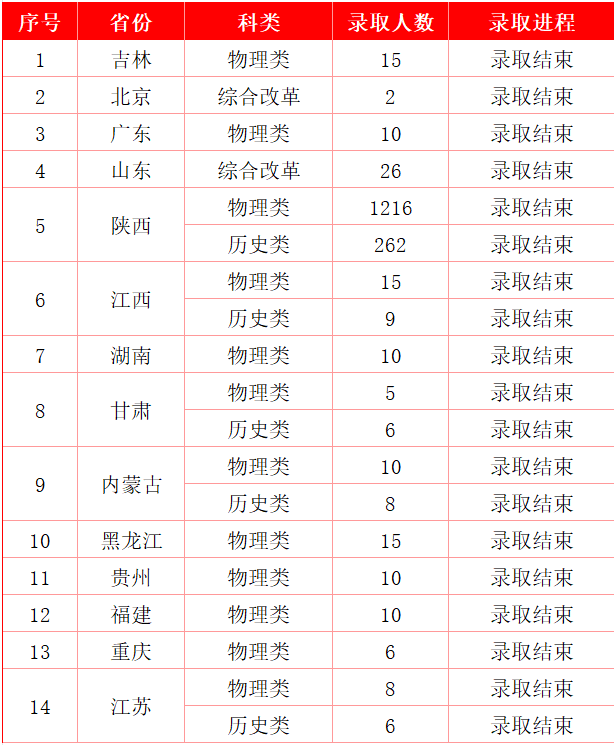 西安建筑科技大学华清学院2025年本科招生录取工作正在进行中。截至7月24日,广西等14个省份的艺术类,江苏、福建等14个省份的普通类录取工作现已结束,详情请见下表: