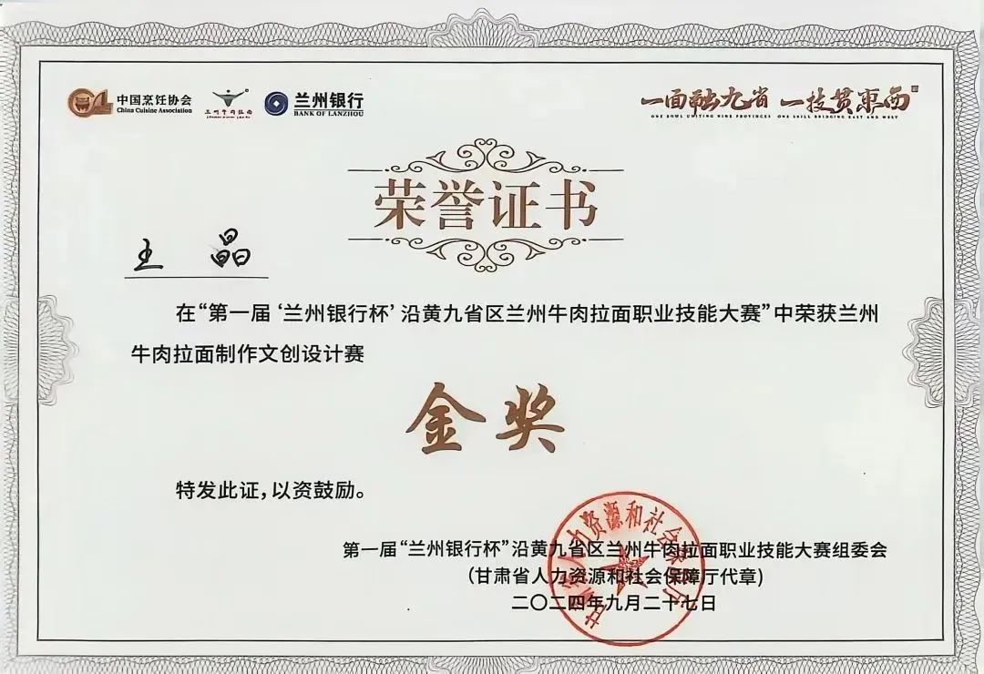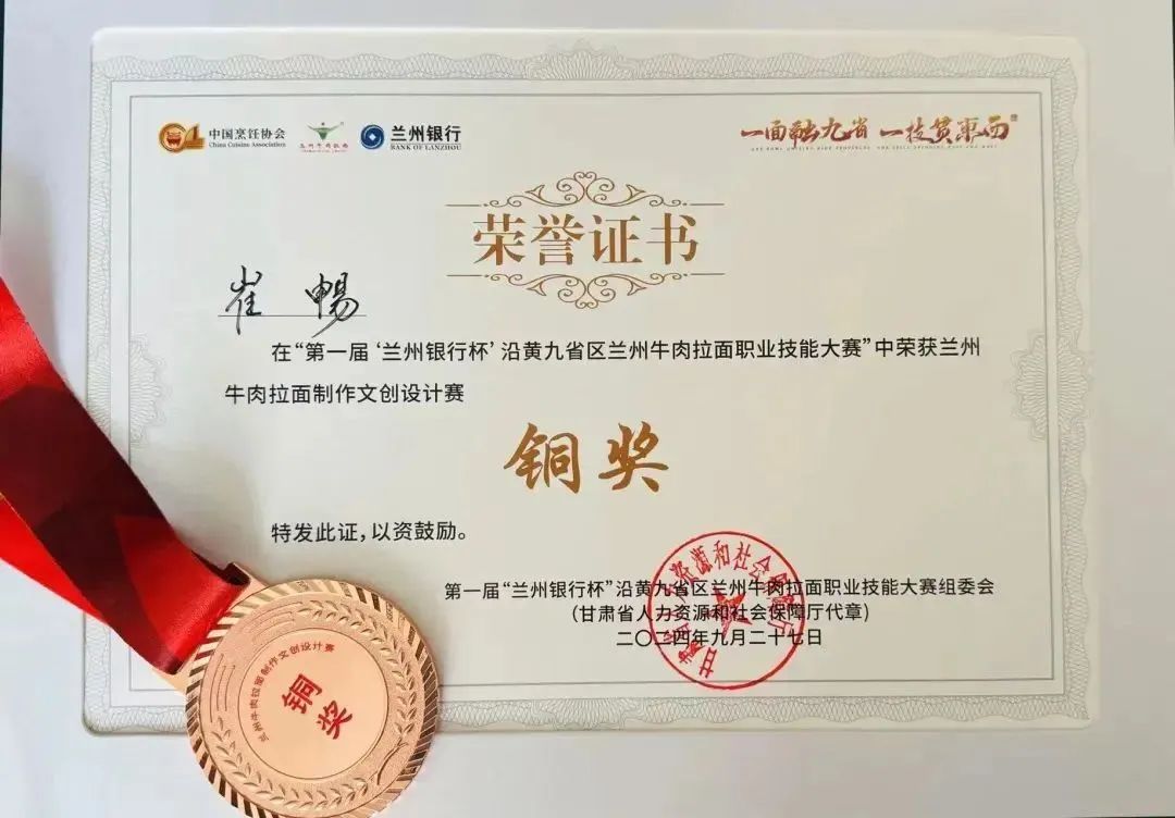 第一届沿黄九省区兰州牛肉拉面职业技能大赛金奖、铜奖