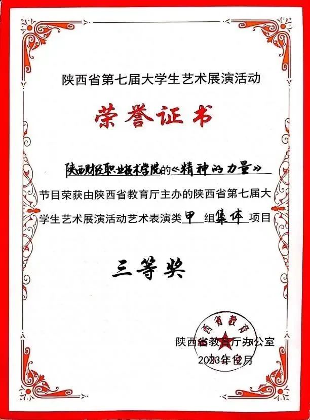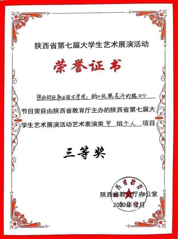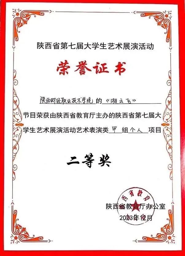 陕西省第七届大学生艺术展演活动艺术表演类二等奖、三等奖