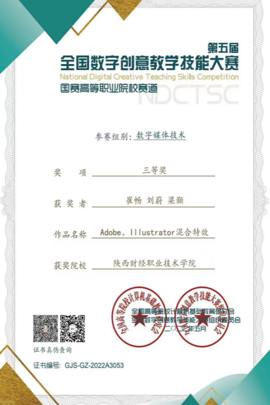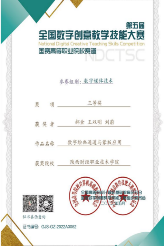 工艺美术专业任职资格证(初级、中级、高级)、工艺美术品设计制作师(四级)、工艺美术师、文创产品数字化设计证书、中国轻工业职业能力评价证书、Adobe国际认证。