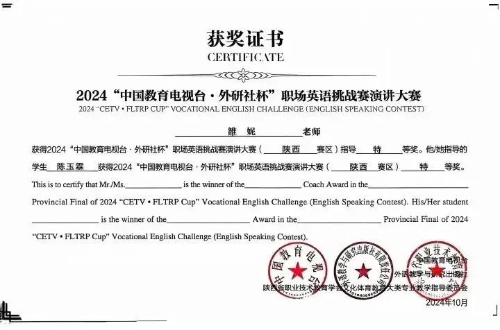 2024“外研社·国才杯”职场英语挑战赛写作组两项省赛一等奖