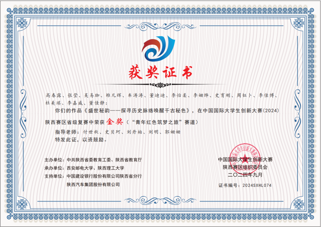 2024年中国国际大学生创新大赛陕西赛区金奖