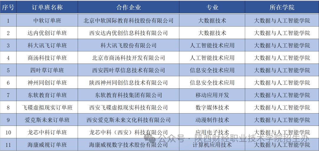 创新的人才培养模式:学院分别与北京字节跳动科技有限公司、中软国际教育科技有限公司、中国联合通信有限公司、西安达内优创信息科技有限公司等企业,共建产教融合共同体,把产业与教学密切结合,实施订单培养。以企业的真实项目为载体,实行分组教学,实现了技能培养与企业需求零距离对接。