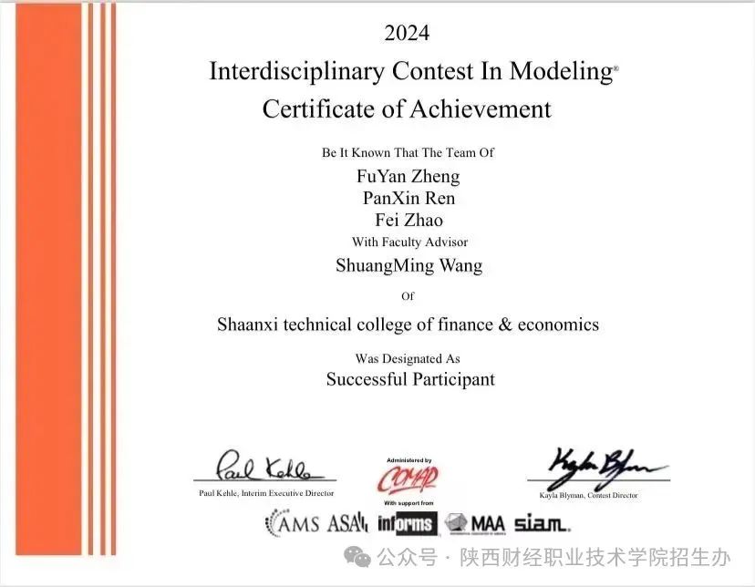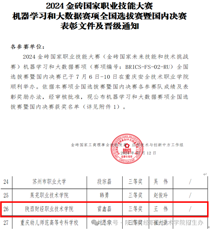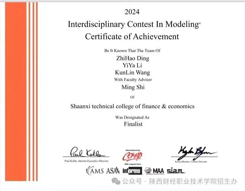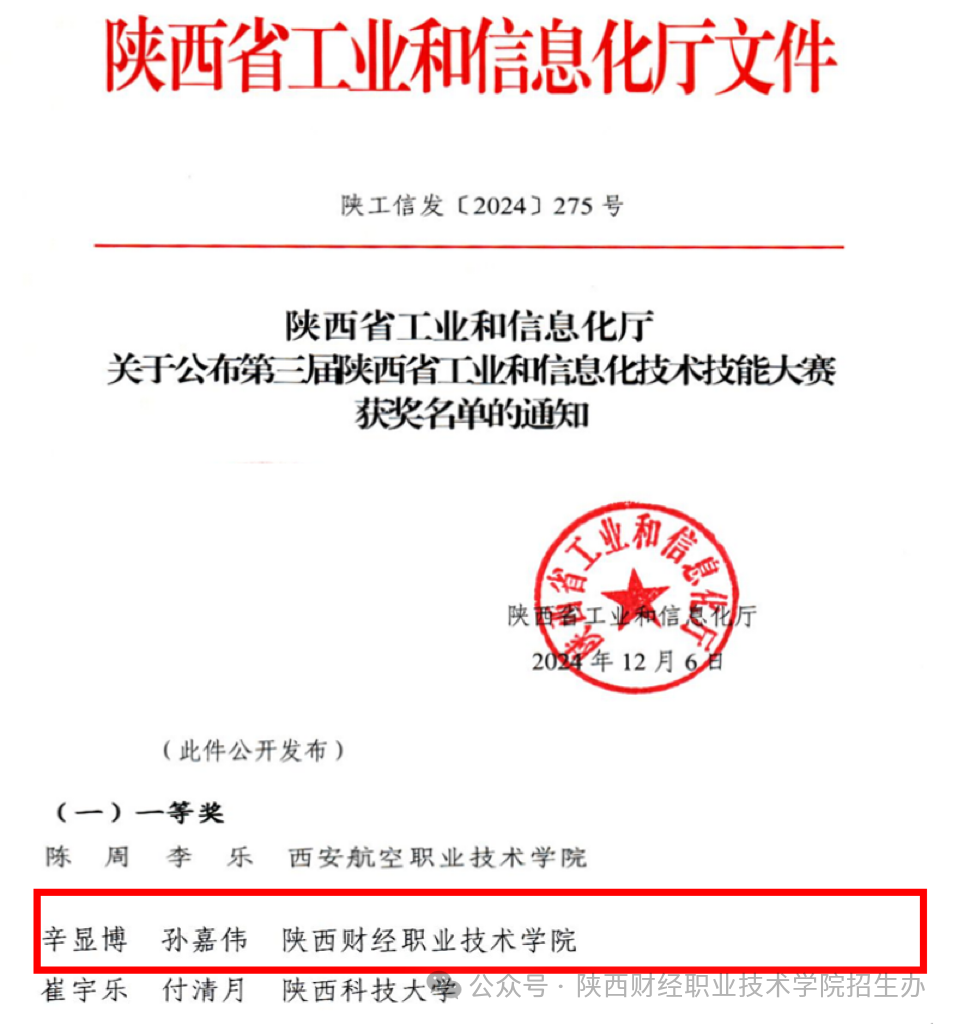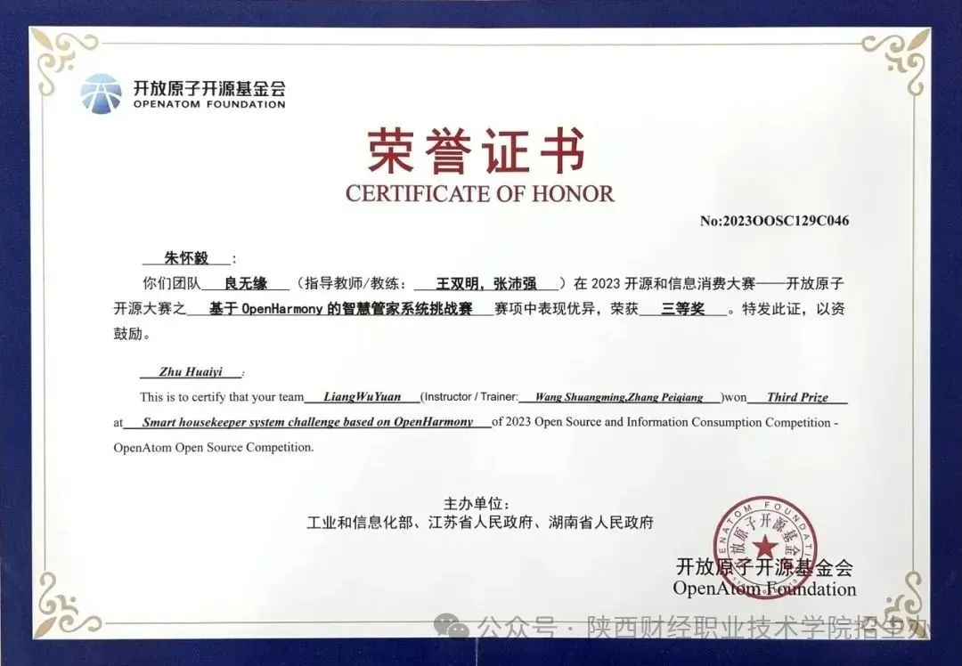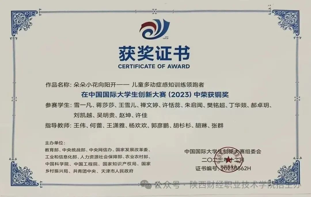 学生在各级各类技能大赛中获得国家级奖项41项、省级奖项80项。近年来,学生荣获美国大学生数学建模特等奖提名奖(Finalist)、美国大学生数学建模国际三等奖、中国国际大学生创新大赛中“朵朵小花向阳开”项目国赛铜奖、第二届全国大学生职业规划大赛成长赛道职教组金奖、中俄职业教育联盟国际大赛区块链技术应用赛项二等奖、中国国际大学生创新大赛中“地脉寻踪”项目省级金奖、第三届陕西省工业和信息化技术技能大赛团体一等奖、陕西省职业院校技能大赛电子信息类赛项荣获一等奖2项等。学院始终坚持以赛促学、以赛促教,通过大赛强化参赛学生的专业技能,提高师生的实践能力和团队协作能力,促进高水平专业群建设。