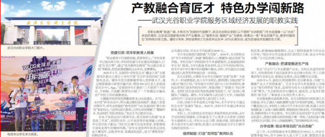 重磅发布!武汉光谷职业学院全新形象宣传片《光的方向》2025年武汉光谷职业学院招生咨询渠道全面开启产教融合育匠才!我校特色办学实践获《长江日报》专版报道!图文|招生办公室