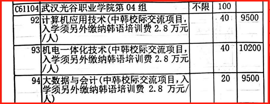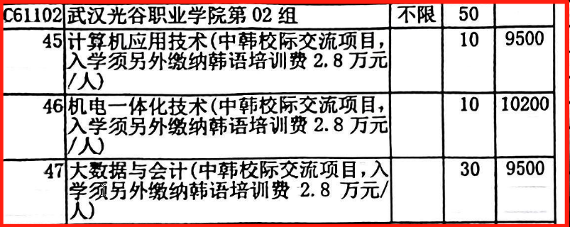 注:本项目为中韩校际交流项目,只录取填报志愿的考生,不得转出至普通类专业。入学后单独编班,除缴纳正常普通专业学费外,另须缴纳韩语培训费2.8万元/人。