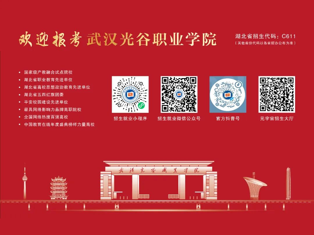 武汉光谷职业学院是经湖北省人民政府批准、教育部备案的全日制普通高等职业学院。学校是响应湖北省人民政府推进互联网+、服务光谷高新产业群成立的一所高等职业学院,是全国唯一以光谷命名的高等院校。