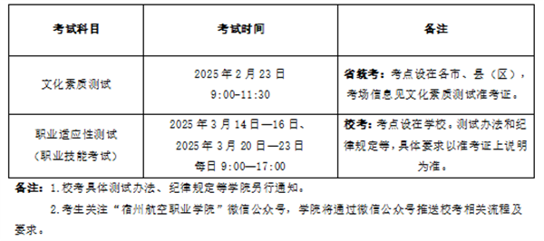 (2)成绩复核:限查漏改、漏统、错统,宽严不查。申请成绩复核的考生务必于2025年3月27日17:00前在我校官网招生专栏下载填写《宿州航空职业学院2025年分类招生考试成绩查核申请表》发送至电子邮箱937600111@qq.com,或现场提交至招生处,逾期不予受理。学院收到邮件后,将自动回复收件情况,于2025年3月28日17:00前以邮件形式回复复核结果。未收到回复的考生,请及时联系学校招生处。