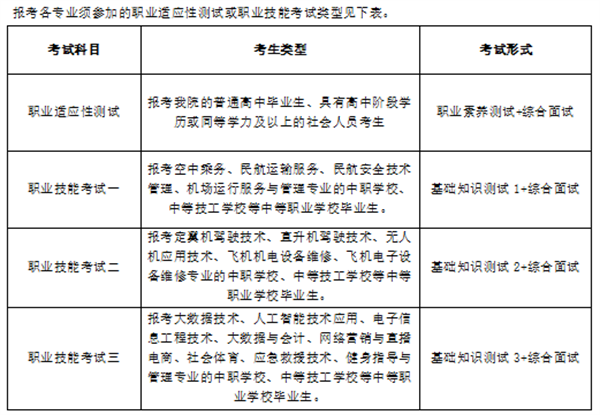 分类考试招生实行“文化素质+职业技能”的考试评价方式。文化素质测试由省考试院统一组织。文化素质测试合格者,普通高中毕业生、具有高中阶段学历或同等学力及以上的社会人员参加我校组织的职业适应性测试;中职学校、中等技工学校等中等职业学校毕业生参加我校组织的职业技能考试。