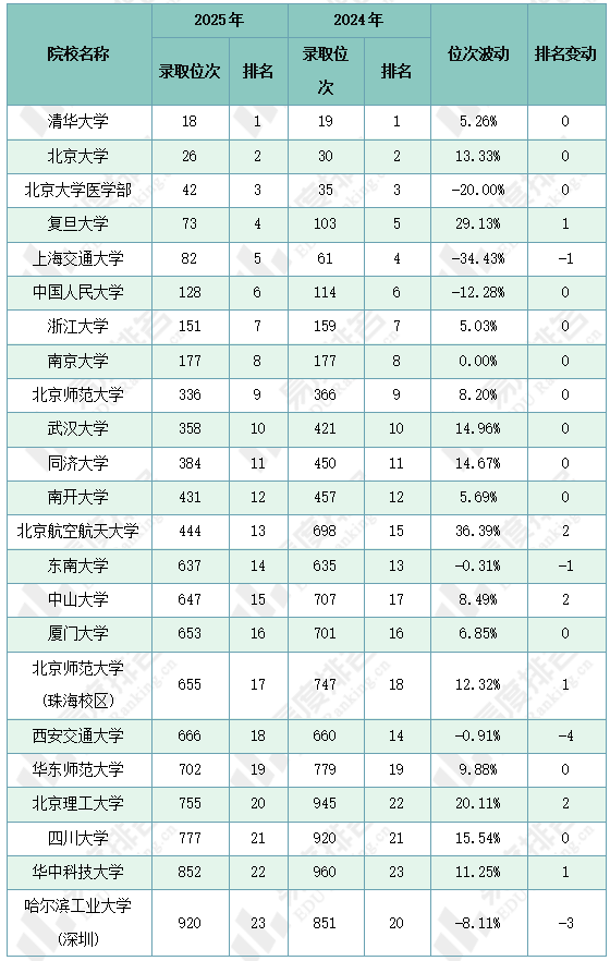 表 4 2024-2025年985院校投档位次波动(历史类)