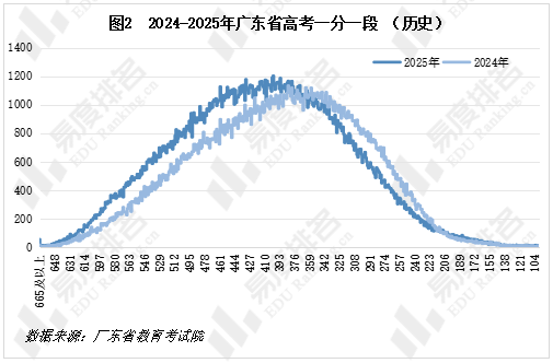 随着2025年高考落下帷幕,各省市(自治区)教育考试院陆续公布了省控线和一分一段表,本文就2024-2025年广东省普通类高考省控线及一分一段表解析近两年高考分数分布的变化情况。