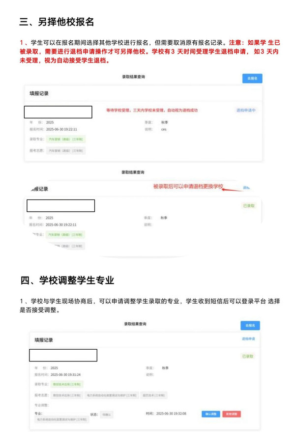2.备注栏中未在统招平台录取的考生于7月28-29日用电脑登录网址https://117.135.201.243:8000(统招平台)注册报名,填报我校,按公示名单中录取专业填报。