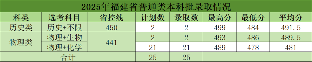 目前,我院2025年福建省普通类本科批录取工作顺利结束,物理类最低录取分数高福建省省控线37分,历史类最低录取分数高福建省省控线34分。现将有关情况公告如下: