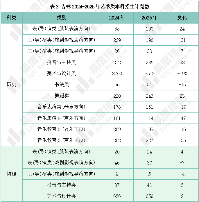 艺术类专业采用综合成绩投档,吉林省2025年