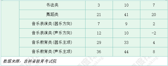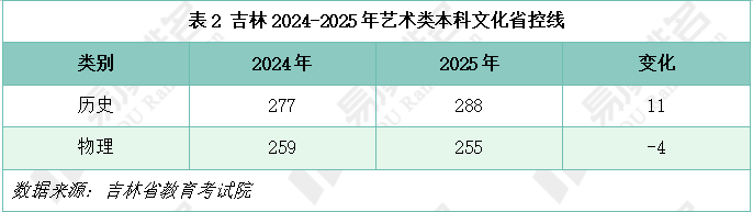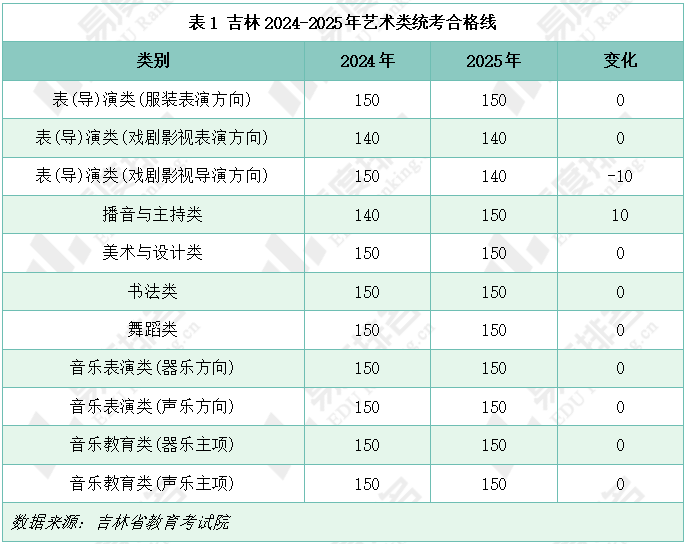 表1展示了吉林省2024-2025年艺术类统考合格线,可以看出,2025年各类别统考合格线基本与去年保持一致。表(导)演类(