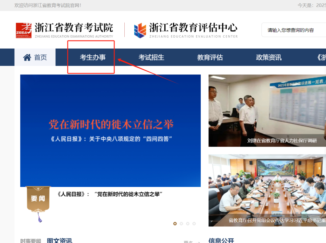 ●登录教育考试院门户网站查询,浙江省教育考试院官网(链接:www.zjzs.net)登录浙江省教育考试院官网,找到“考生办事”栏目