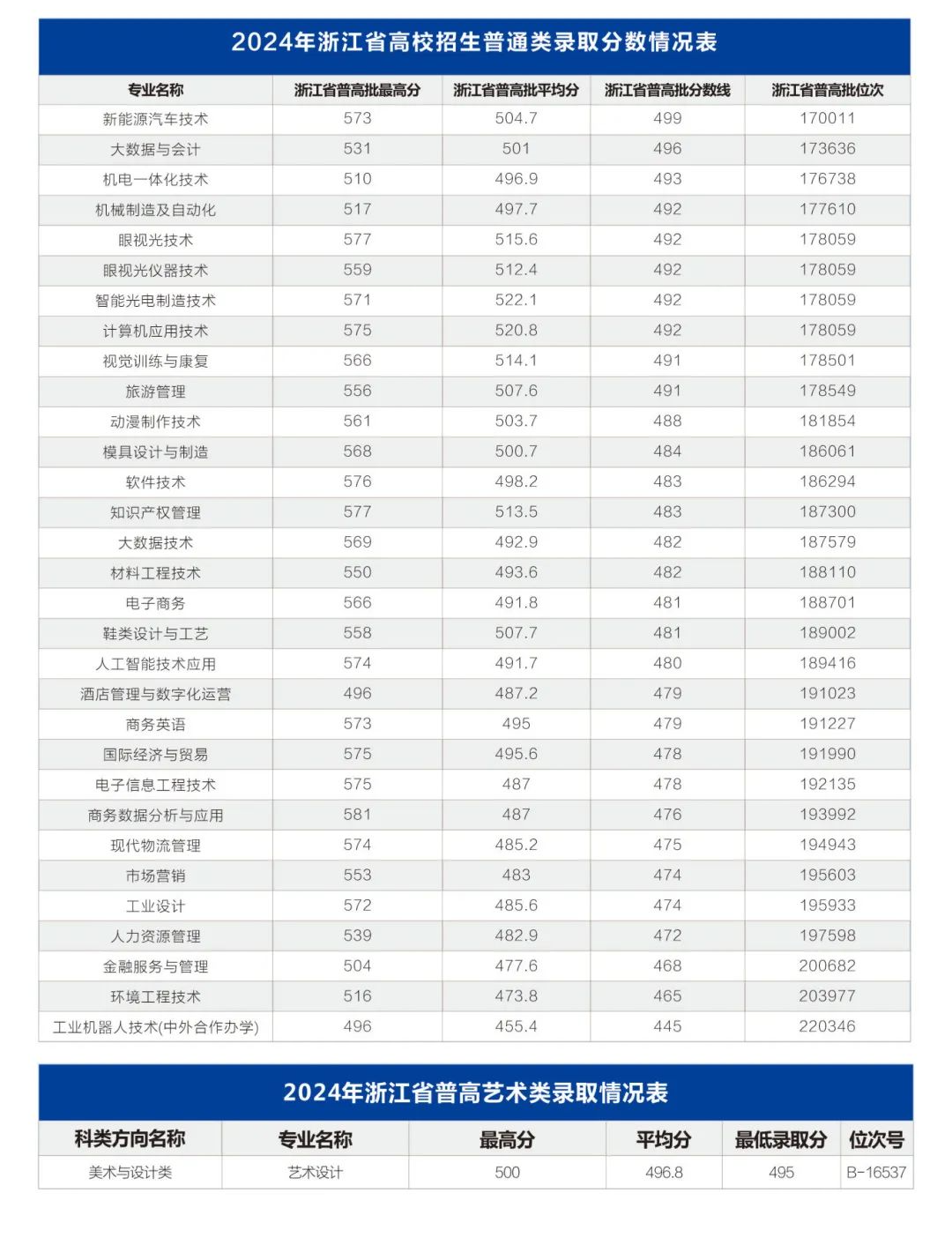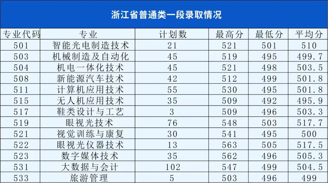 我校浙江省普通类一段平行志愿录取工作已结束,13个专业已完成录取:眼视光仪器技术、眼视光技术、智能光电制造技术、新能源汽车技术、大数据与会计、机电一体化技术、旅游管理、鞋类设计与工艺、数字媒体技术、机械制造及自动化、计算机应用技术、视觉训练与康复、无人机应用技术。剩余23个专业继续面向浙江省普通类二段考生招生。根据以往录取情况,以及往年填报志愿的经验,我们整理了报考指南,供您参考。