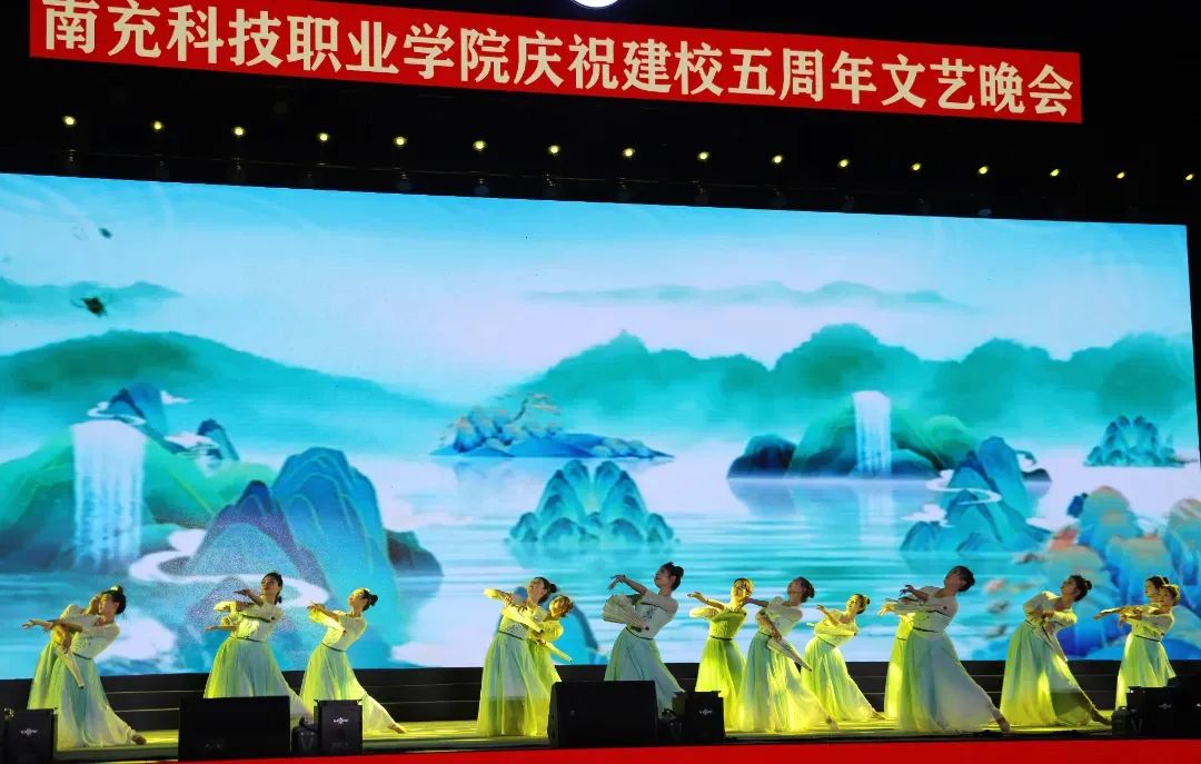 建校五周年庆典晚会的舞台上,《南科之光》的歌声遍布校园的每个角落,歌舞、情景剧、川北大木偶、杂戏、诗朗诵等十余个精美的节目,带领万千师生们踏上“筑梦”旅途。厚德、精技、砺能、笃行,五载春秋,弦歌不辍。