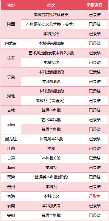 截至7月27日18时,我校已将部分录取考生的名单上传至学校招生信息网的“录取查询”系统。考生可登录西安财经大学行知学院招生信息网“录取查询”系统查询。具体可查询的批次如下:
