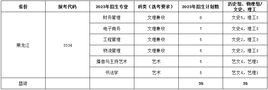 山西应用科技学院2023年黑龙江省招生专业及计划
