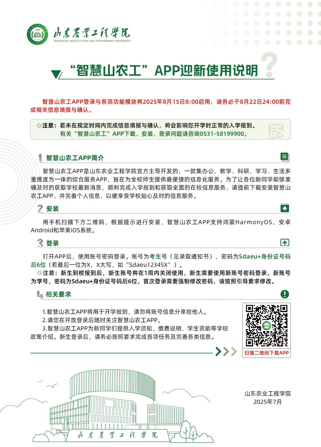三、“智慧山农工”APP迎新使用说明