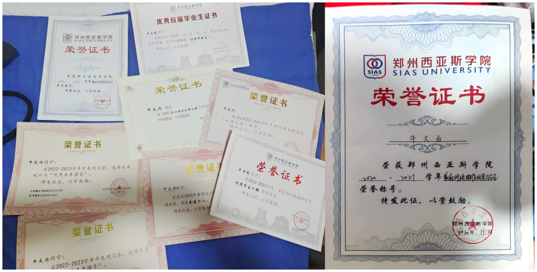 ↑牛大为获评河南省大中专院校优秀毕业生