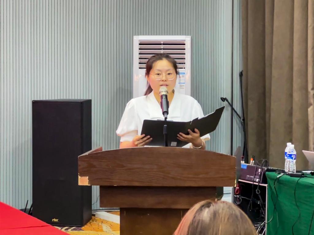 马克思主义学院副院长王小红副教授代表优秀教师发言。王老师与新入职教职工分享了个人15年的工作心得,她认为教育是慢艺术,要给成长以时间;站稳讲台的前提是站稳心灵的高台;教育者的幸福,藏在被遗忘的细节里。她希望自己的心得体会能够化作微光,照亮新入职教职工的教育征程。