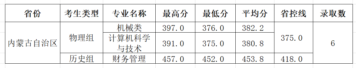 柳州工学院2025年内蒙古普通批第一次征集投档情况