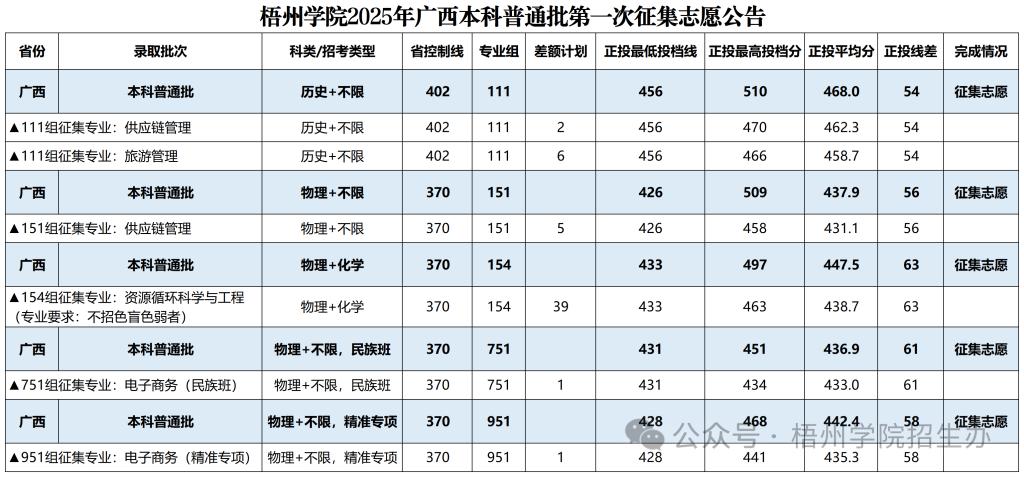 我校广西2025年本科普通批第一次征集志愿计划数及正投投档情况如下: