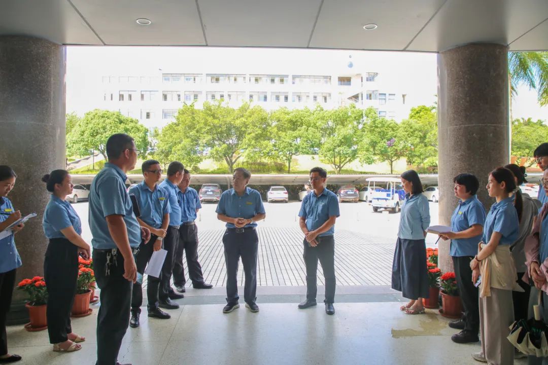 今年6月是全国第24个“安全生产月”,主题为“人人讲安全、个个会应急——查找身边安全隐患”。为切实做好期末及暑假期间校园安全管理工作,有效保障师生安全,全面排查治理安全隐患,根据学校“安全生产月”工作部署,漳州科技职业学院于6月26日组织开展了2025年春季学期期末校园安全大检查。分管安全工作的副校长林超融、校长助理刘富才带队检查,安稳办、教学管理中心、后勤服务中心、安保中心、图文与信息技术中心、各二级学院等相关处室负责人以及食堂商户代表共同参与。