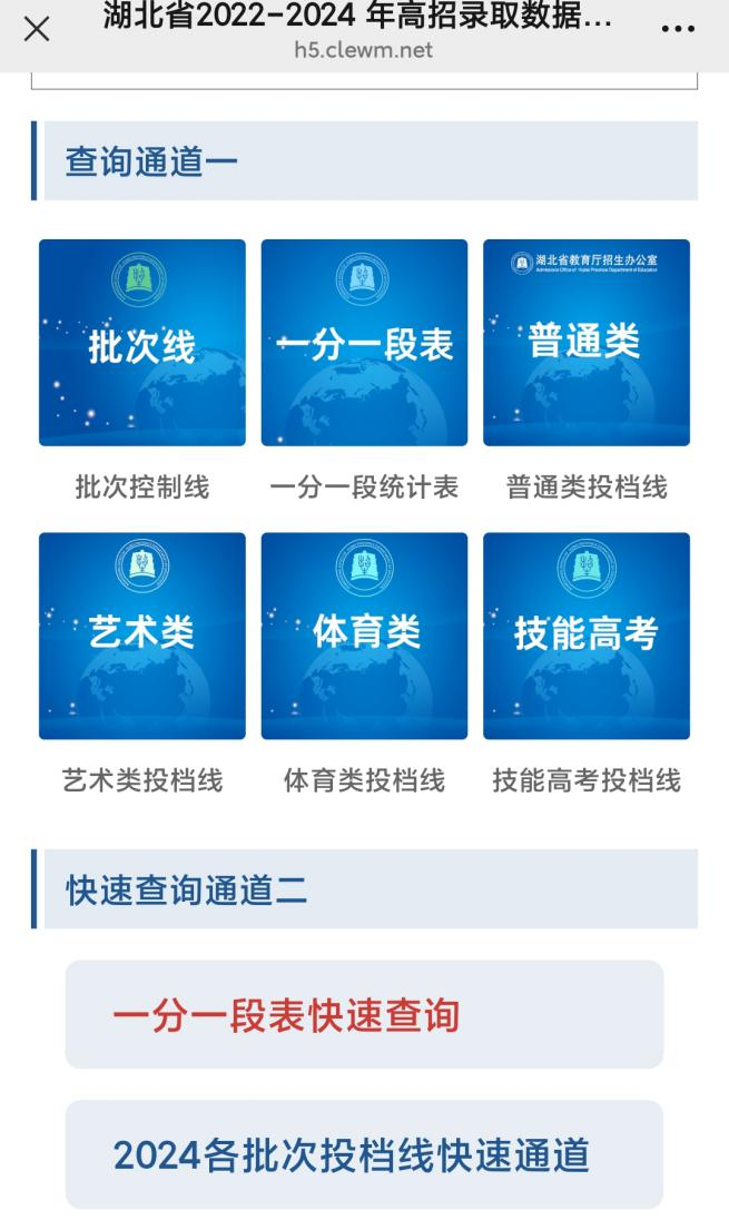 6. “往年招录数据”模块:主要放置2022年以来高招批次线、一分一段表、各类投档线等重要信息,提供2个查询通道和多个专题汇总。