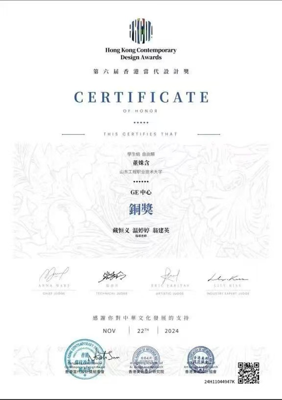 目前就职于中国电建集团核电工程公司。在校期间曾参与创新创业大赛,在2022年12月获得共青团济宁市兖州团委志愿服务荣誉证书,2023年2月参与兖州区“青⻦计划”寒假社会实践活动。在工作上参加潍坊市城市更新项目、国家能源博兴2×1000MW机组新建项目建设。