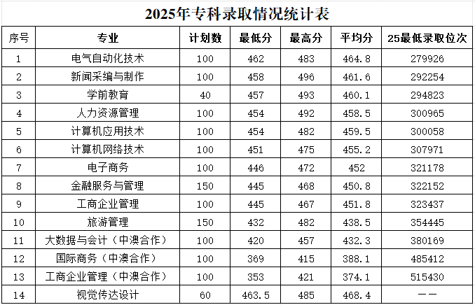 我校山东省常规批专科、艺术类专科批录取工作于7月30日下午结束,专业录取分数情况见下表: