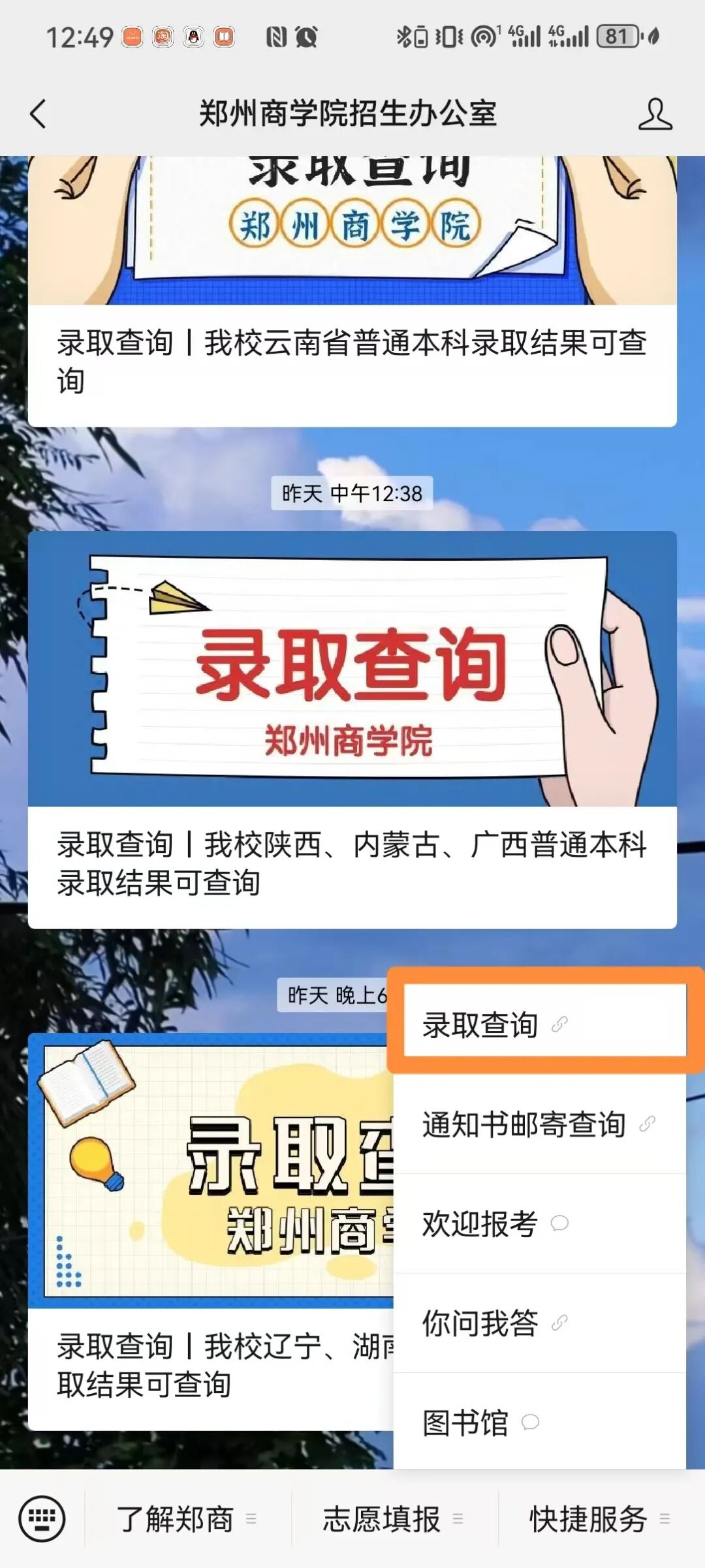 通过“郑州商学院招生办公室”微信公众号