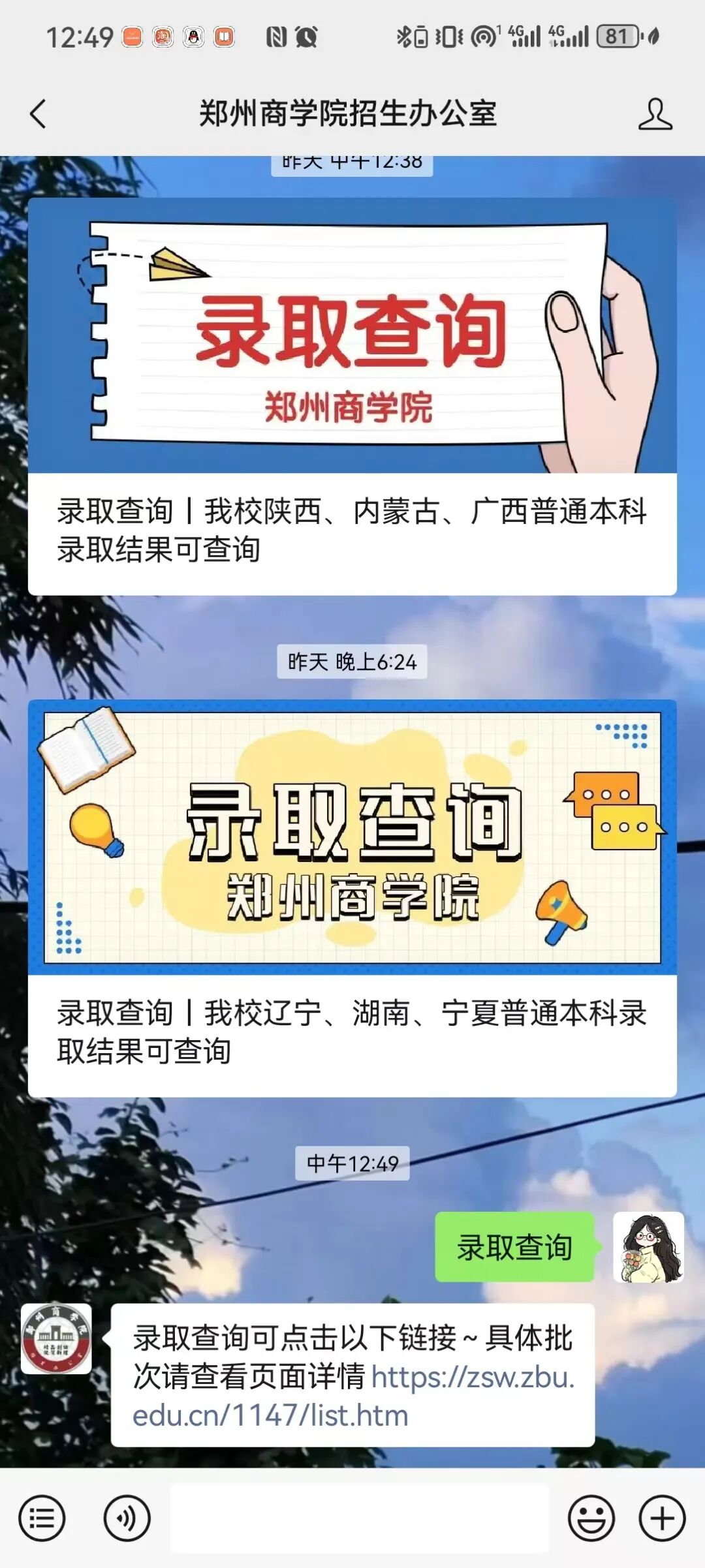 查看是否被其他院校录取
