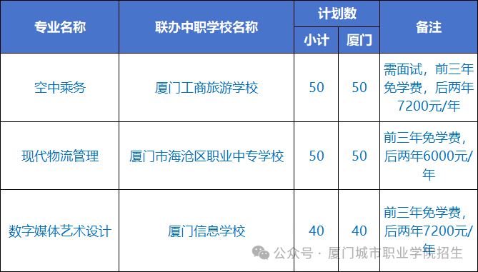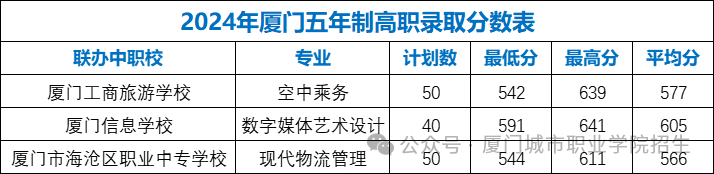 2.参加2025年福建省统一组织的初中学业水平考试(中考),志愿填“厦门城市职业学院空中乘务专业”。按厦门五年专分数线择优录取。