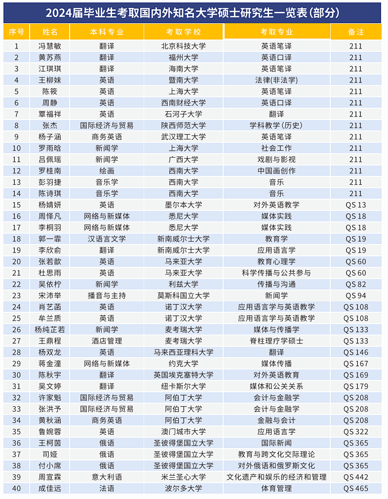 学校以促进毕业生充分就业、高质量就业为目标,建立了完善的就业服务体系,极力引导大学生创新创业,努力开拓境外就业市场,2024届毕业生境外就业33人,毕业生考取研究生147人,其中数十名毕业生考取国际知名大学和国内一流高校。