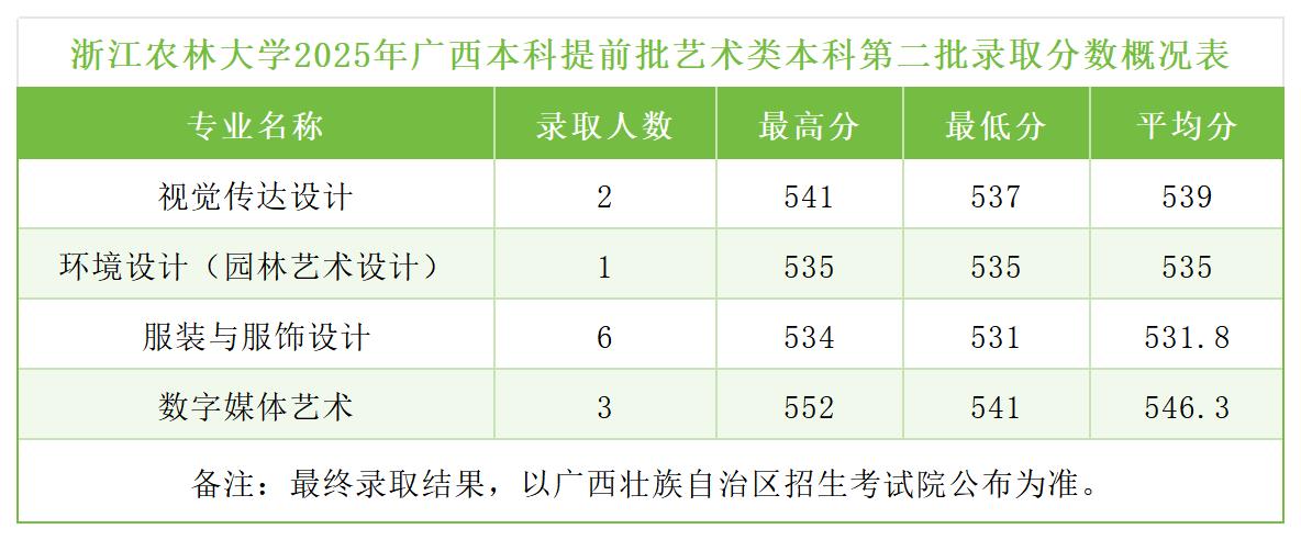 我校2025年广西本科提前批艺术类本科第二批录取结束,录取结果已可在网上查询。最终录取结果以广西壮族自治区招生考试院公布为准。